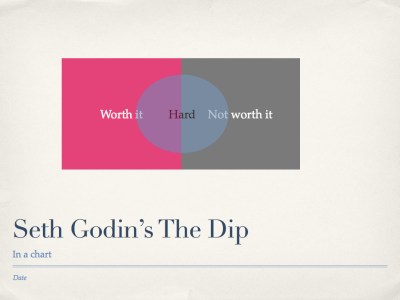 Godin says there are things that are hard to do that are worth it in the end, and there are things that are hard to do that are not worth it. He also says smart people quit things that aren’t worth it, and stick with things that are. Unfortunately, no advice present on how to tell the difference.